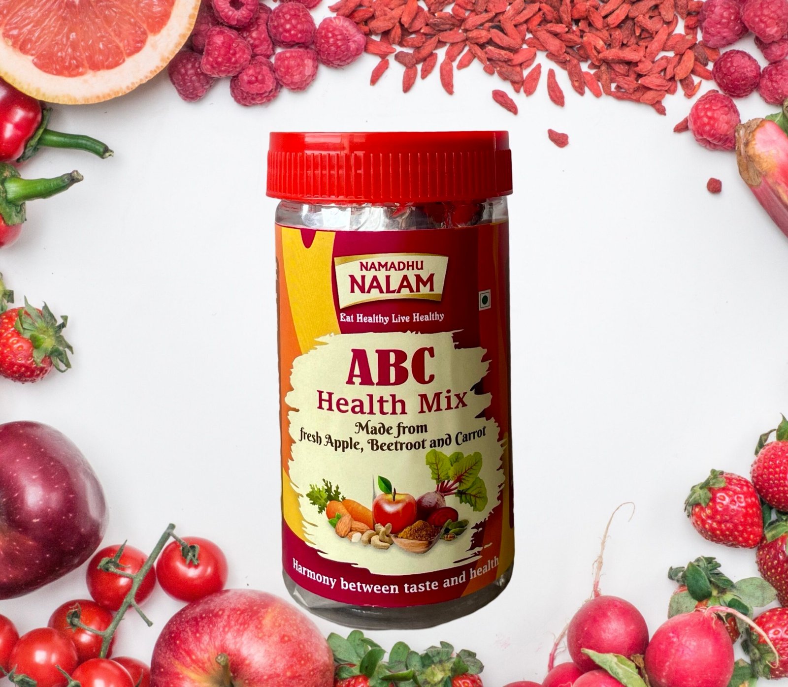 ABC Health drink is a powerful health supplement enriched with the natural goodness of Apple, Beetroot, and Carrot. This nutrient-rich malt is packed with essential vitamins, minerals, and antioxidants, making it the perfect daily health booster. Regular consumption of ABC Health mix can reduce acne, pigmentation, and uneven skin tone, leaving you with radiant, healthy skin. Nalam gives you a full pack of energy and health benefits in a good way.