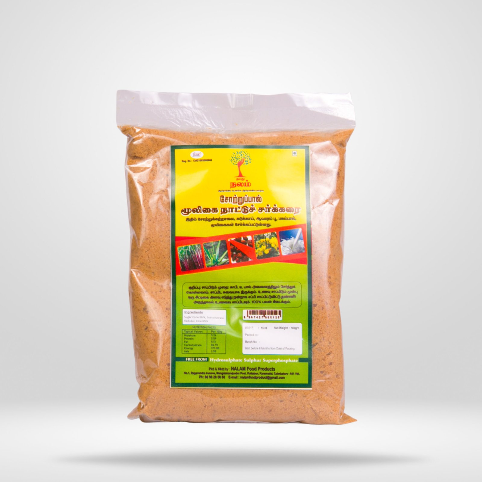 Nalam herbal aloe vera jaggery powder. Made from 100% natural ingredients. Cane jaggery powder is a natural, unrefined brown sugar made from sugarcane juice. It’s produced by boiling the juice until it solidifies, then grating it into a powder. Cane jaggery powder is a healthy alternative to white sugar, and it’s full of minerals and micronutrients. Jaggery cleanses the blood, ridding it of toxins thus, it enables the healthy functioning of organs. It is rich in iron that helps restore haemoglobin levels.nalam herbal jaggery powder added aloevera, inknut, coriander seeds, cardamum andTanner casia flower to enhance the goodness for helping in diabetes.