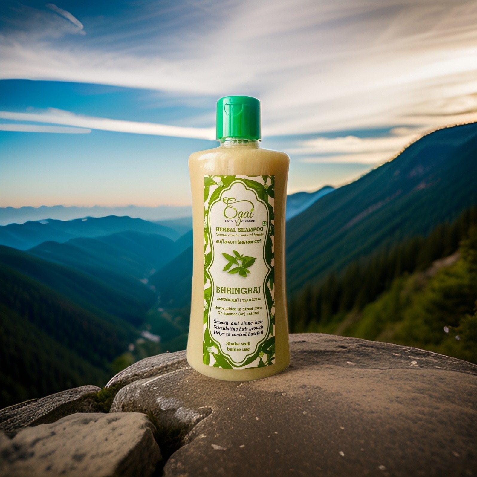 Herbal shampoos are imbued with naturally-derived elements that are benign and nurturing for both hair and scalp. our egai shampoo is infused with original herbal elements in it. natural ingredients like hibiscus, onions, fenugreek, khas khas root, amla, aloevera and bringa are added individually. to make your hair healthy and beutiful.