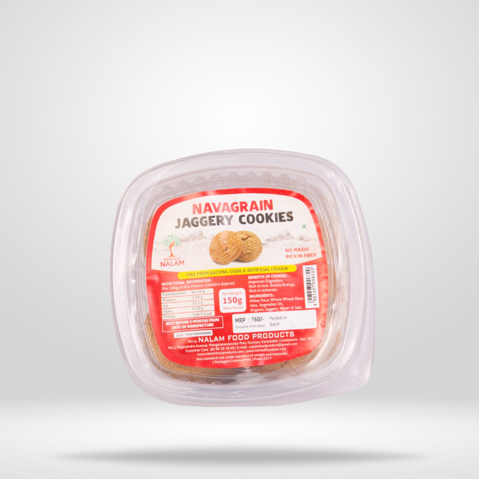 + Shipping Charges ApplicableNavagrain millet cookies contains several millets and natural cane jaggery powder with no added chemical substances.